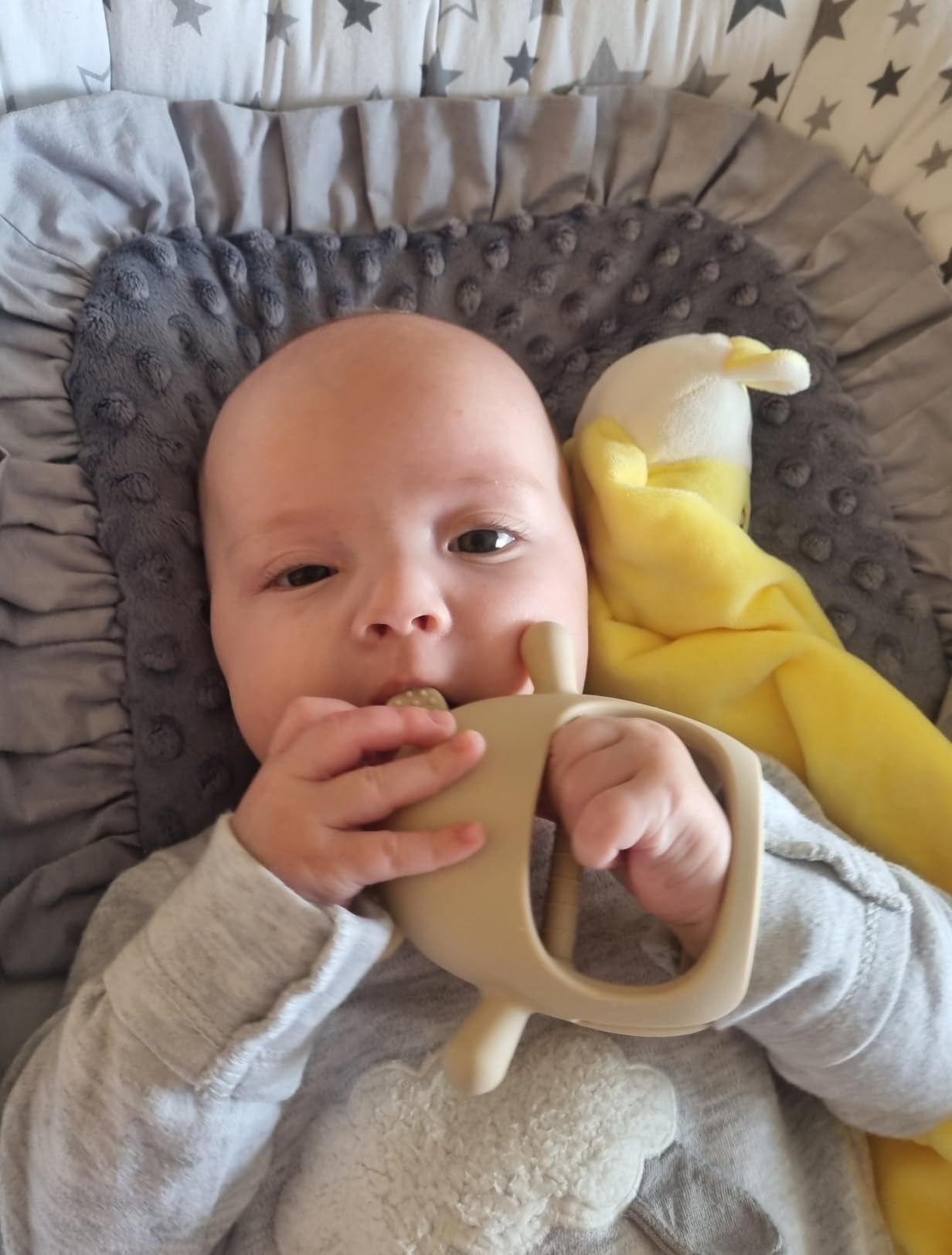 Sinds we deze bijthandschoen hebben, is mijn dochtertje een stuk rustiger. Ze houdt hem goed vast en kauwt erop zonder gedoe. Had ik dit maar eerder geweten!