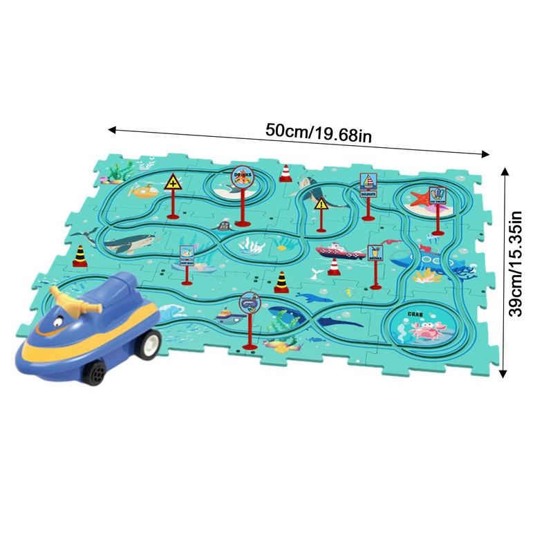 Maak kennis met de Puzzel racer: een uniek racespel dat plezier en leren combineert in één boeiend pakket! Zie hoe uw kind spannende racebanen creëert, racers navigeert en logische uitdagingen oplost, waardoor hun probleemoplossend vermogen, motorische vaardigheden en creativiteit worden gestimuleerd. De PuzzleRacer is verkrijgbaar in spannende thema's zoals dinosaurussen, oceaan, land en ruimte en neemt kinderen mee naar fantasierijke werelden die aanzetten tot verhalen vertellen en ontdekken.